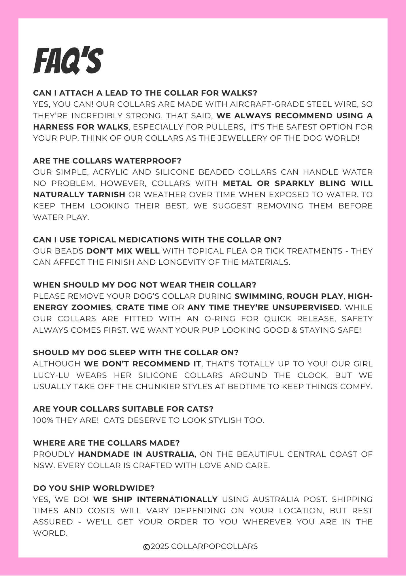 Have further questions? Email us at hello@collarpopcollars.com.au